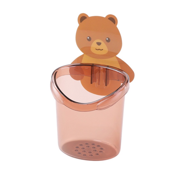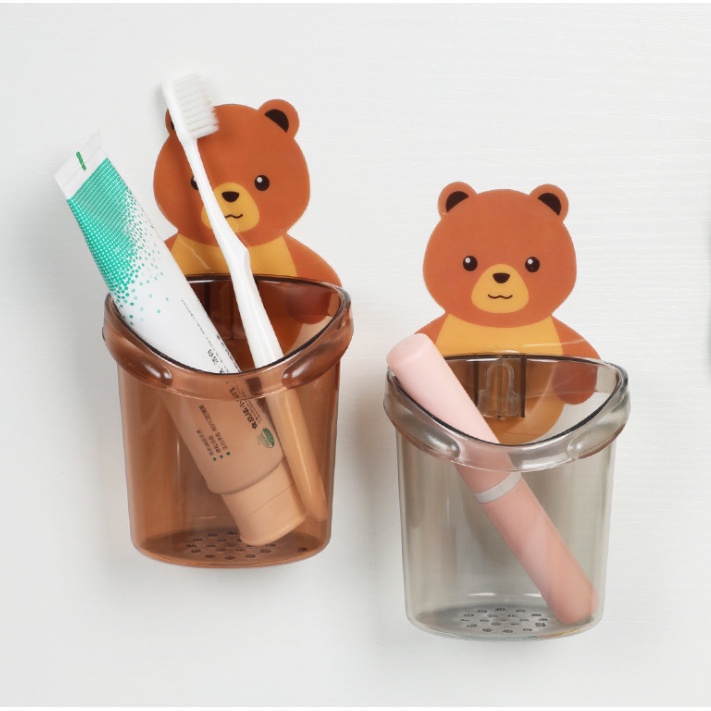 Cốc gấu dán tường đựng bàn chải đánh răng, cốc gấu nâu đựng kem đánh răng