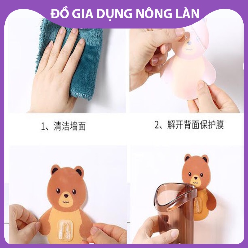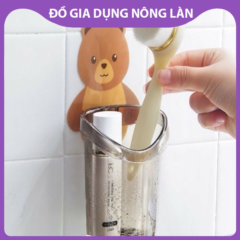 Cốc gấu dán tường đựng bàn chải đánh răng, đồ dùng nhà tắm hình gấu Có lỗ thoát nước tiện lợi NL Shop