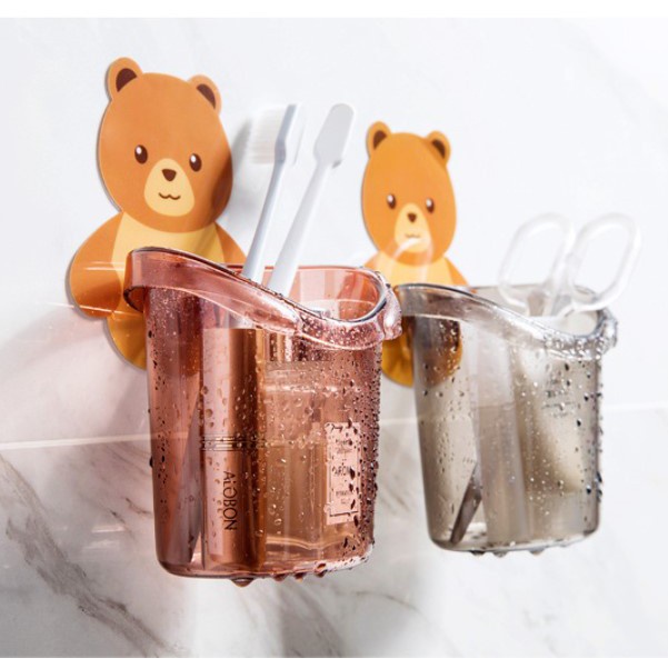 Cốc gấu dán tường đựng bàn chải kem đánh răng cốc đựng bàn chải treo tường hình gấu nâu dễ thương