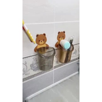 Cốc Gấu Dán Tường Đựng Bàn Chải Kem Đánh Răng Siêu Tiện Lợi