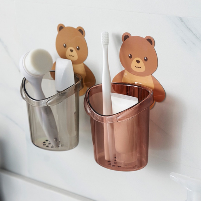Cốc gấu dán tường đựng bàn chải đánh răng,dụng cụ vệ sinh cá nhân