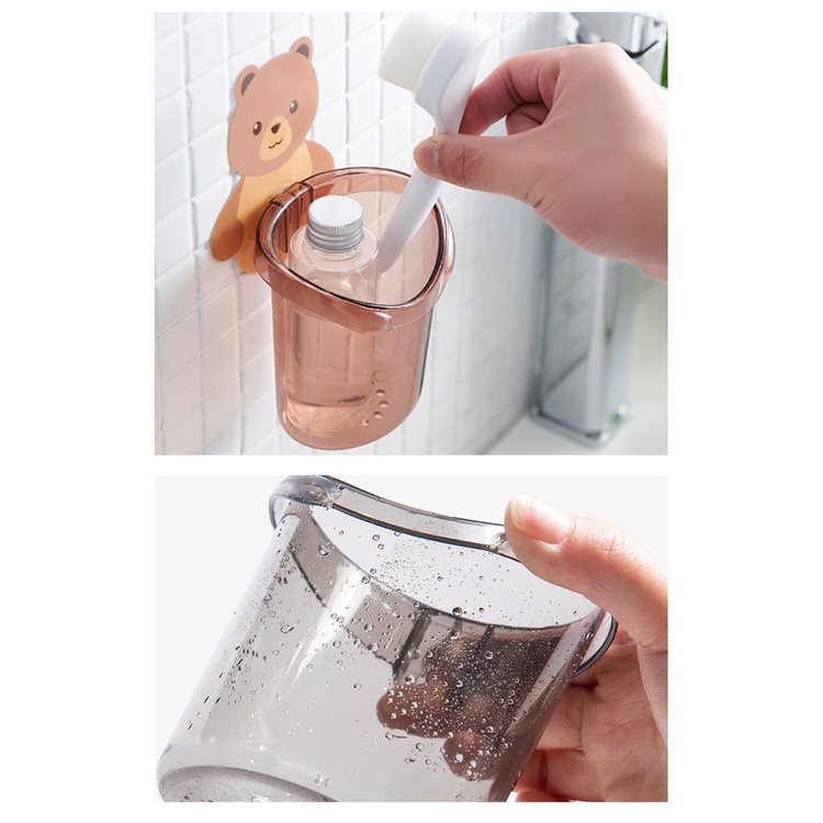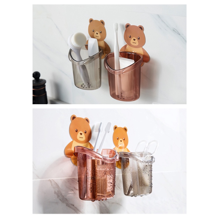 Cốc gấu dán tường đựng bàn chải đánh răng, cốc gấu nâu đựng kem đánh răng, Kệ đựng bàn chảiKệ đựng bàn chải
