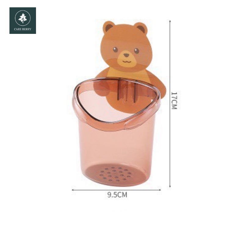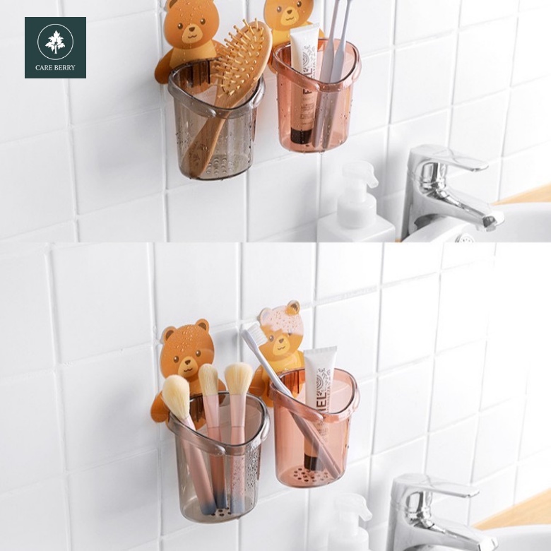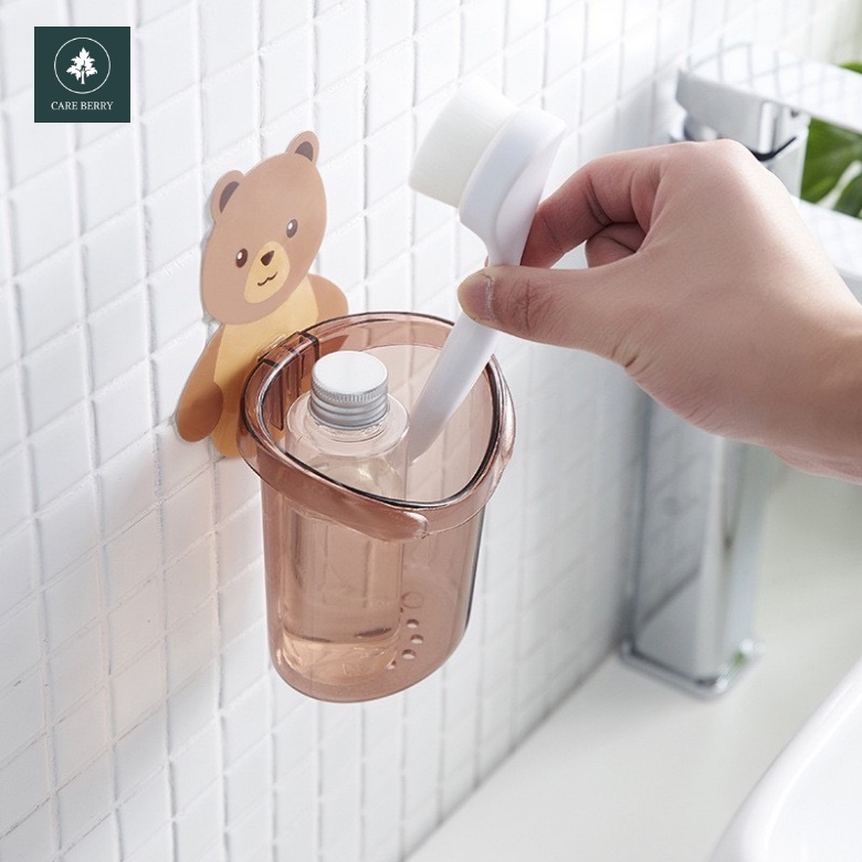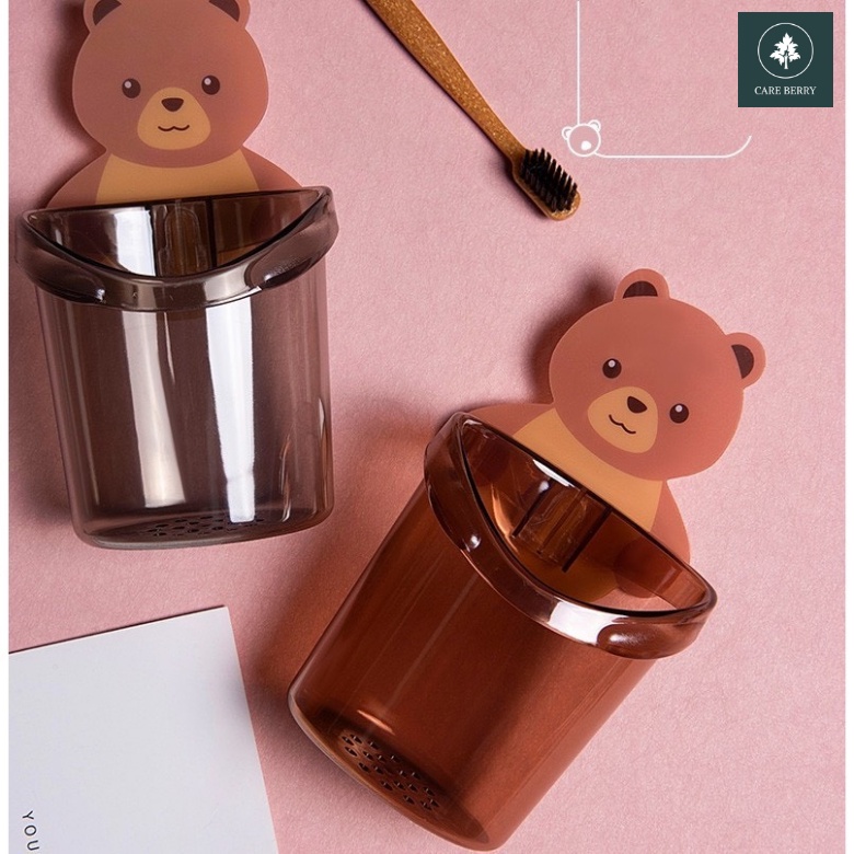 Cốc gấu dán tường đựng bàn chải đánh răng, cốc gấu nâu đựng kem đánh răng