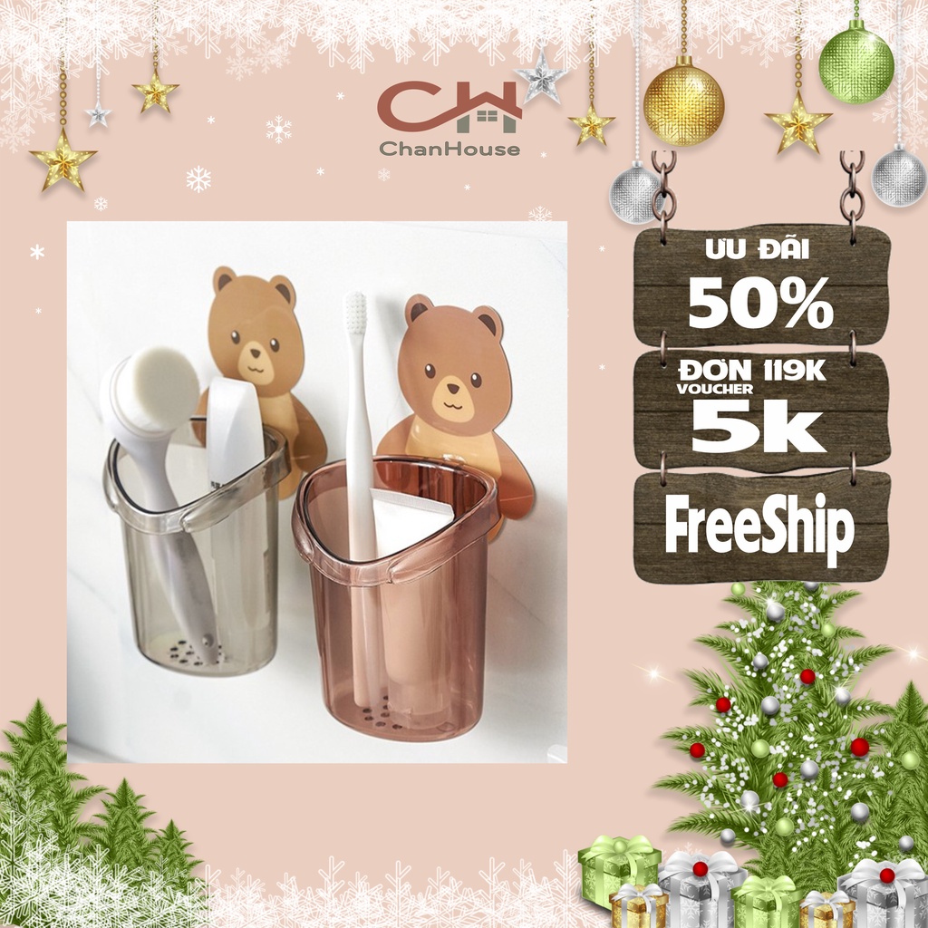 Giới thiệu Cốc Gấu Dán Tường Đựng Bàn Chải Kem Đánh Răng Cốc Đựng Bàn Chải Treo Tường Hình Gấu Nâu Dễ Thương, Cốc Đựng Đồ Nhà Tắm