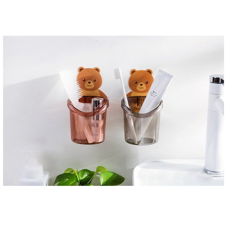 - Cốc Đựng Bàn Chải Và Kem Đánh Răng Hình Gấu Dễ Thương Dán trực tiếp lên tường, không cần khoan, sức chứa lên đến 5kg
