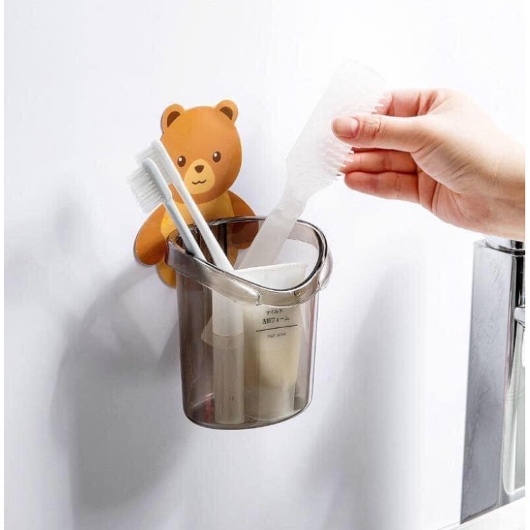 Cốc gấu dán tường đựng bàn chải kem đánh răng ,đựng đồ đa năng tiện lợi