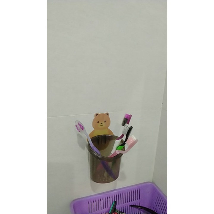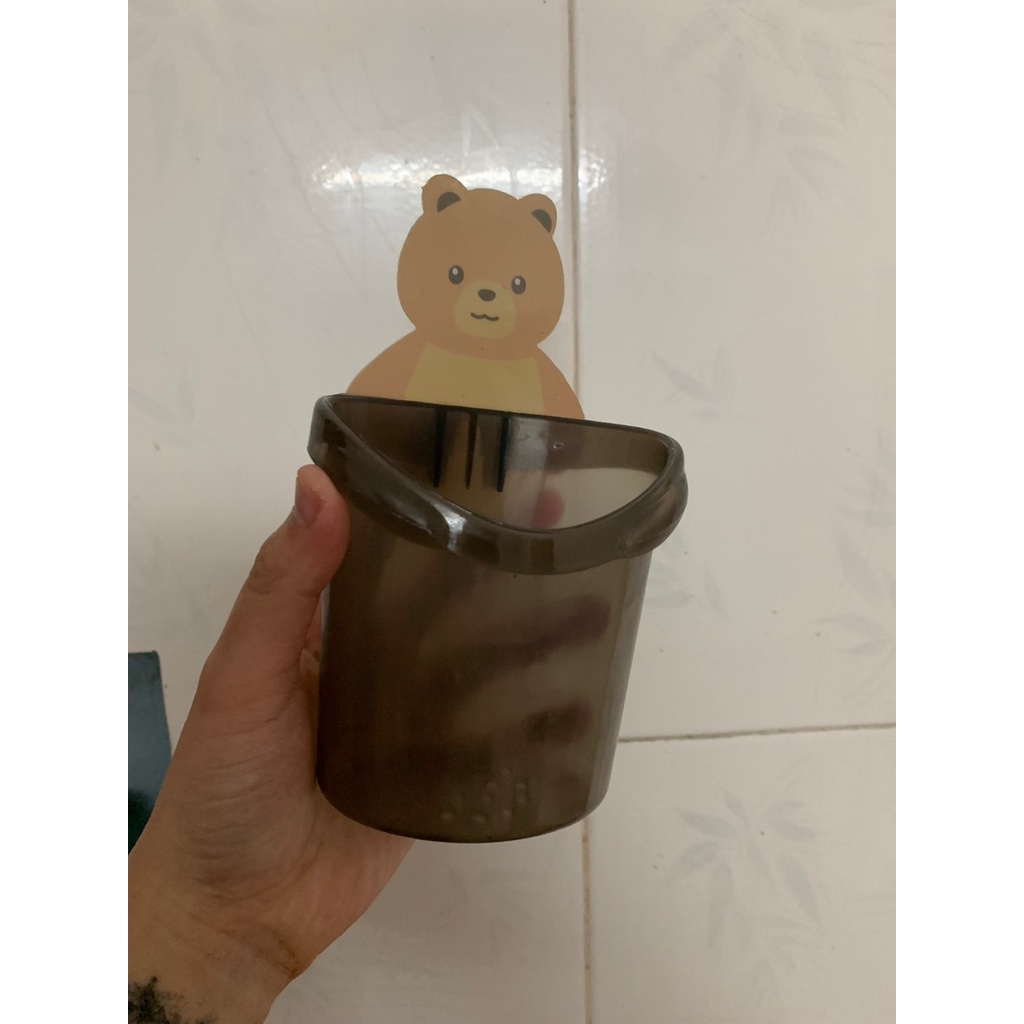 Cốc gấu dán tường đựng bàn chải đánh răng, cốc gấu nâu đựng kem đánh răng Gia Ân