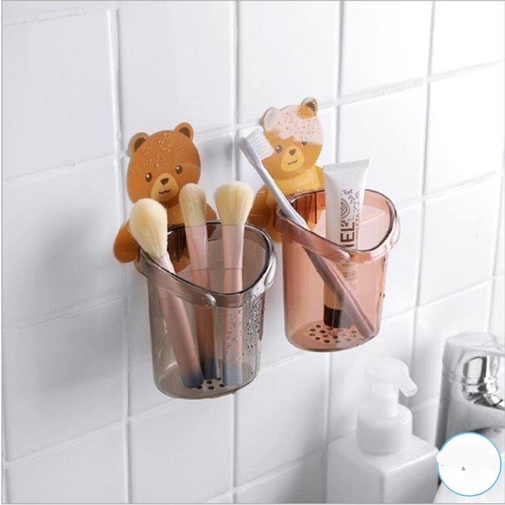Cốc Gấu Dán Tường Đựng Bàn Chải Kem Đánh Răng Hình Gấu Nâu Dễ Thương(Shop Giau Màu Ngẫu Nhiên Nhé)