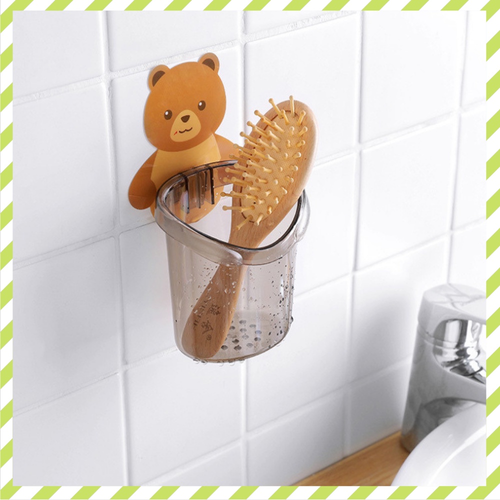 Cốc gấu dán tường đựng bàn trải kem đánh răng cốc đựng đồ nhà tắm hình gấu dễ thương