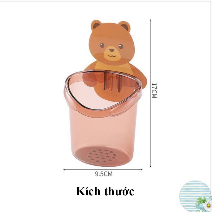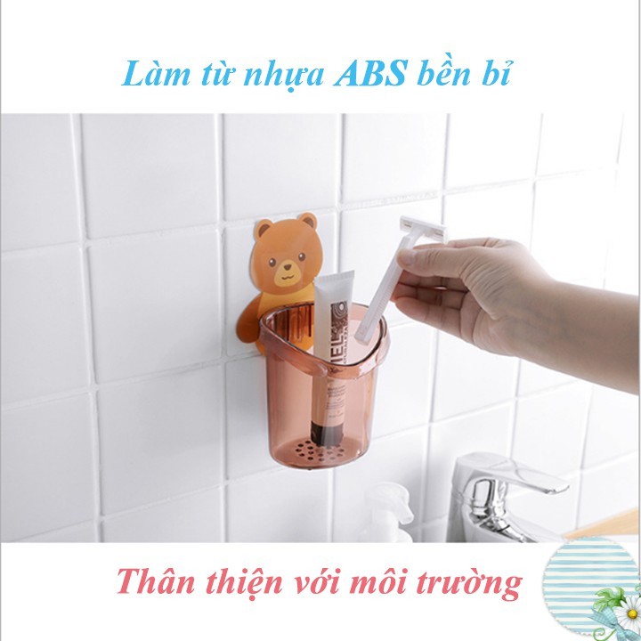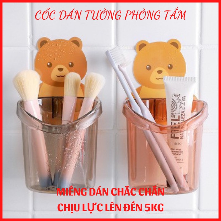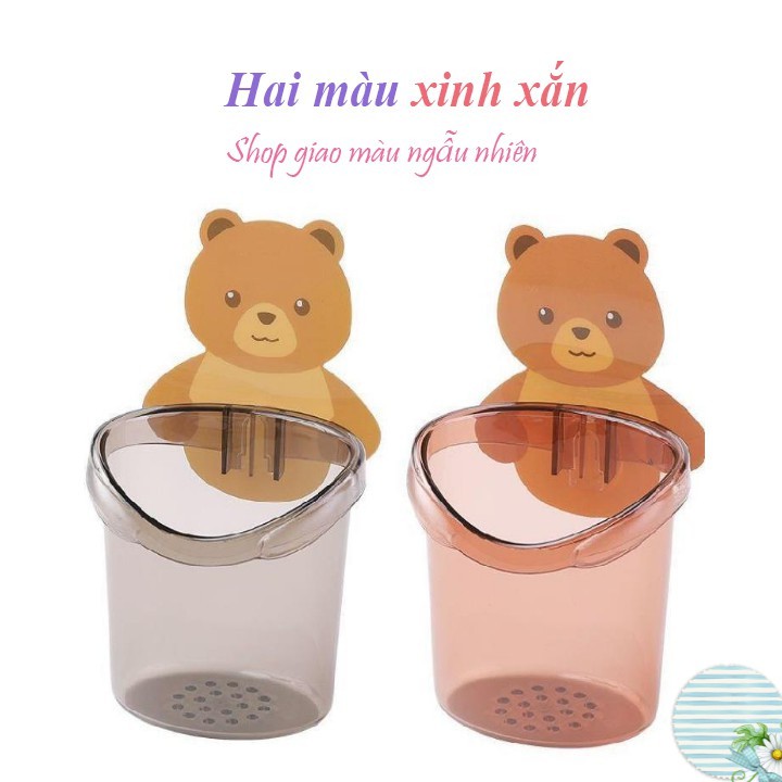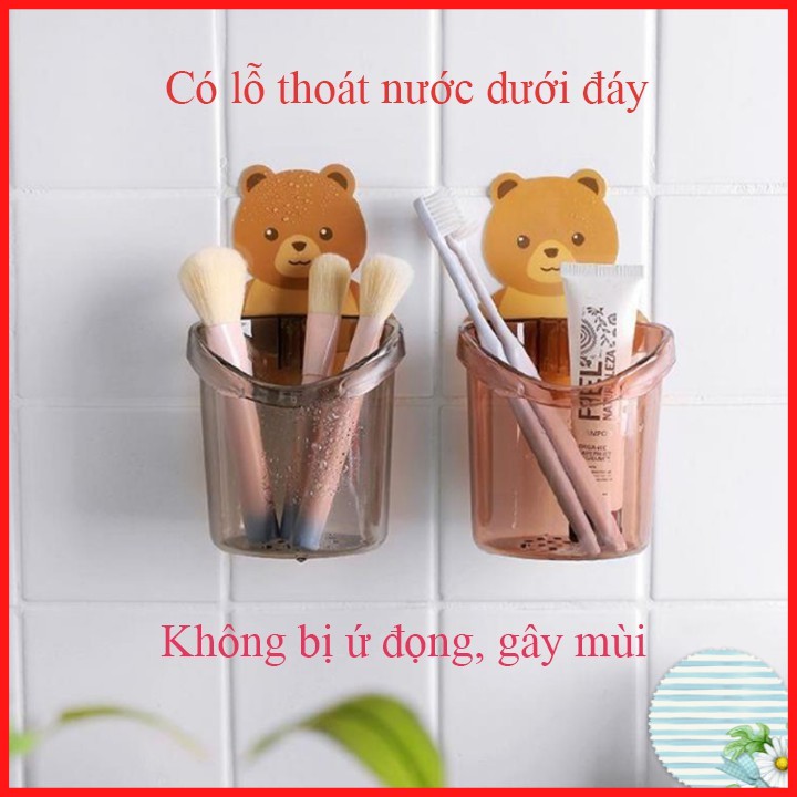 Cốc Gấu Dán Tường Phòng Tắm, Cốc Đựng Bàn Chải, Kem Đánh Răng Cute Hình Gấu Gắn Tường Có Lỗ Thoát Nước Tiện Lợi