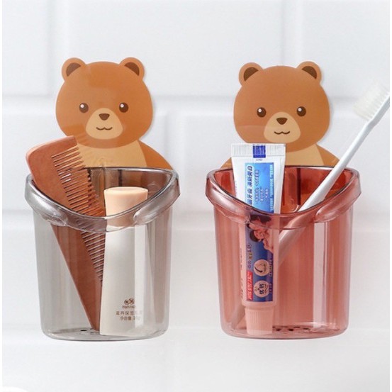 Cốc gấu dán tường siêu dính đựng bàn chải kem đánh răng
