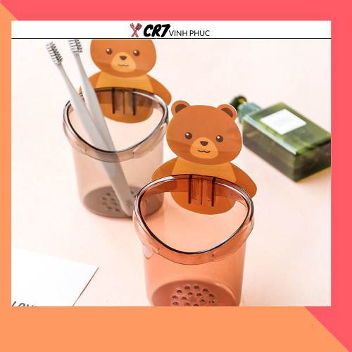 Cốc gấu đựng bàn chải đánh răng, cọ trang điểm, thìa có miếng dán siêu chắc