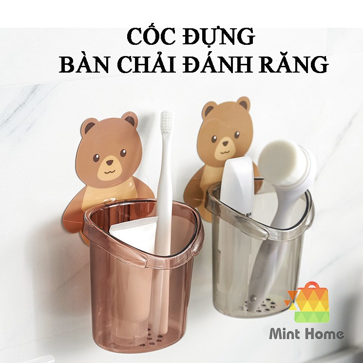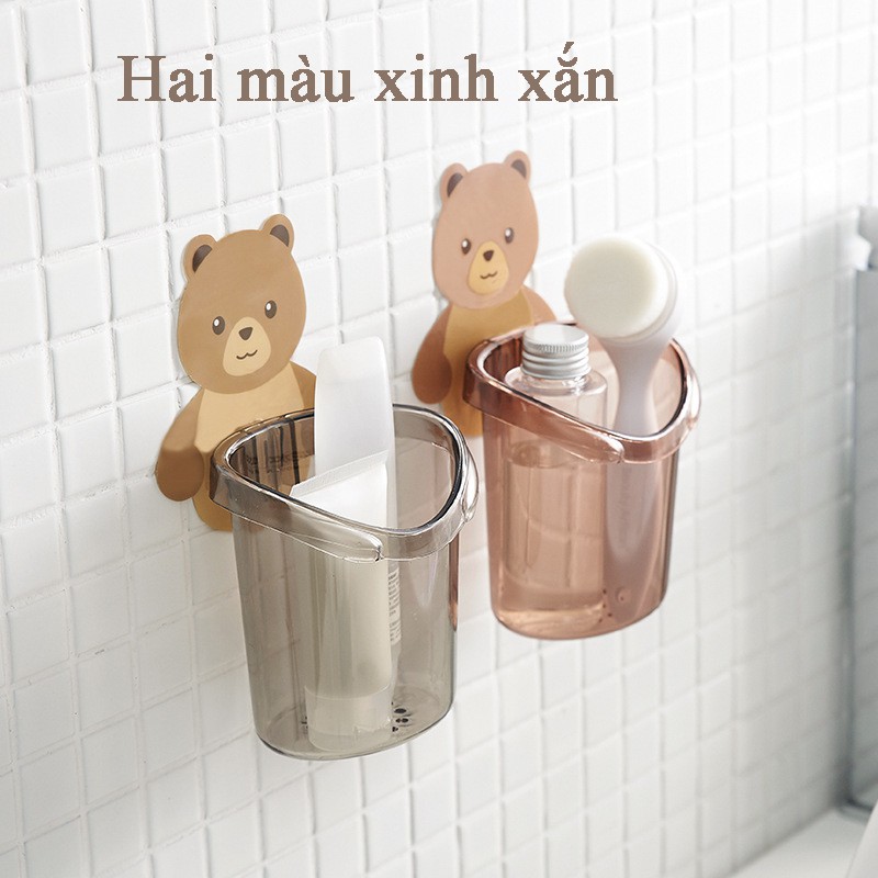 Cốc gấu đựng bàn chải đánh răng điện cho bé, giá ly để cắm kem đánh răng dán gắn tường hình gấu dễ thương