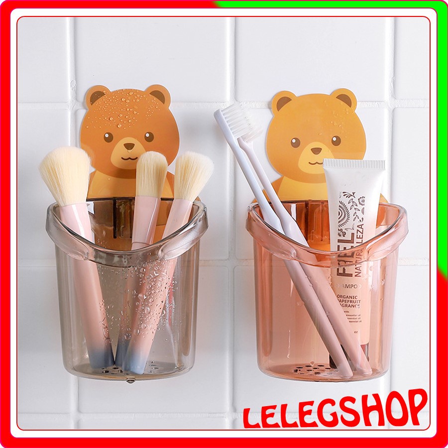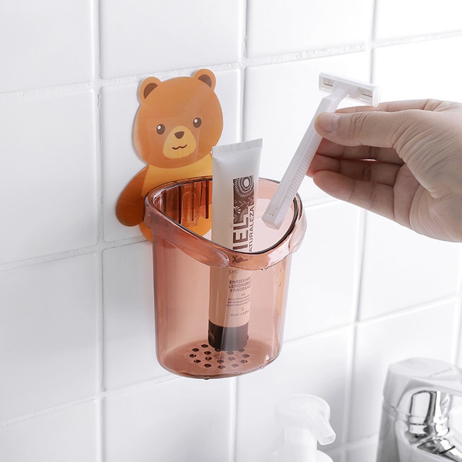 Cốc gấu đựng bàn chải đánh răng li cốc dán tường hình gấu đa năng đựng kem bàn chải đánh răng