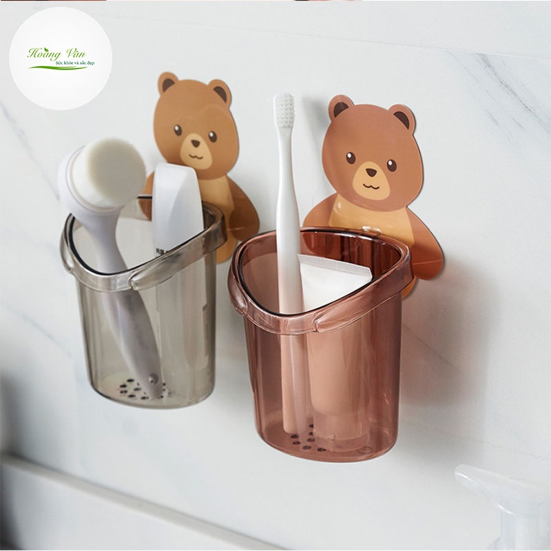 Cốc gấu đựng bàn chải, kem đánh răng - dán tường siêu dính siêu dễ thương