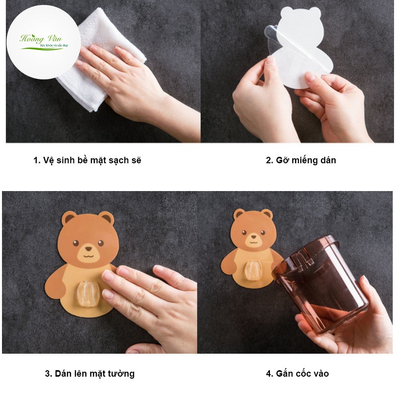 Giới thiệu Cốc gấu đựng bàn chải, kem đánh răng - dán tường siêu dính siêu dễ thương