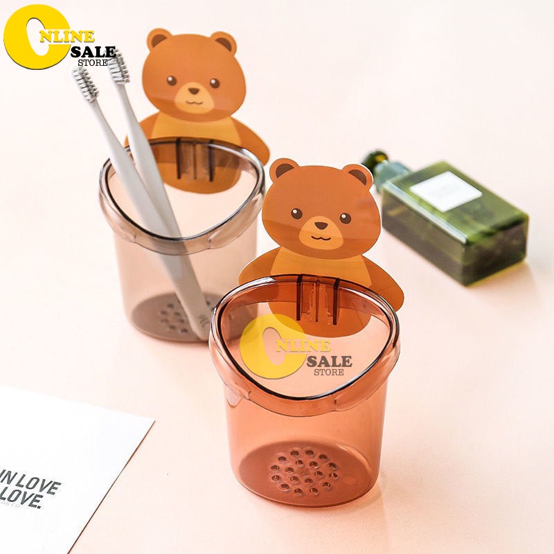 Cốc gấu đựng bàn chải kem đánh răng dán tường trong nhà tắm, kệ đựng bàn chải