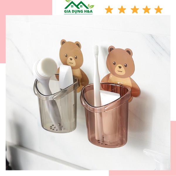 Giới thiệu Cốc gấu đựng bàn chải kem đánh răng Cốc gấu dán tường siêu dính [FREESHIP TỪ 50K]