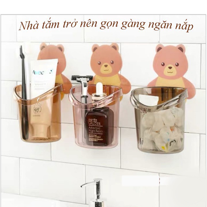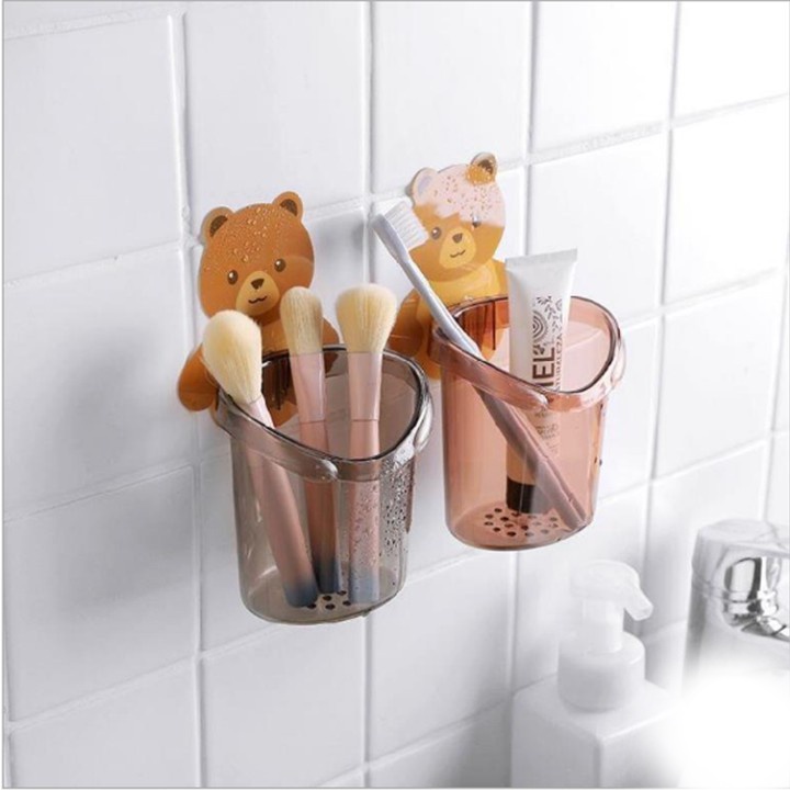 Cốc gấu đựng kem bàn chải đánh răng dán tường siêu chắc, gọn gàng, tiện dụng