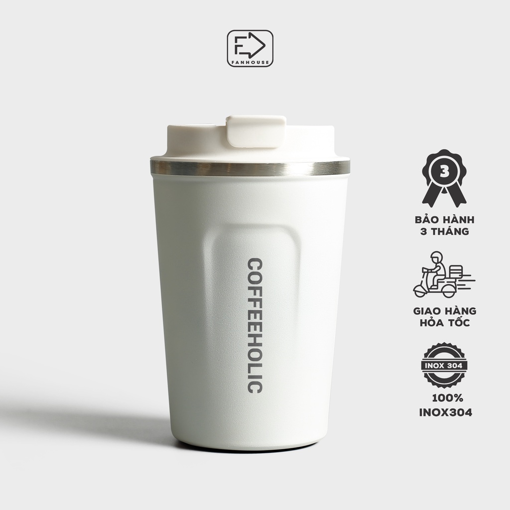 Cốc giữ nhiệt Coffeeholic 380ml Fan House, inox 304, chống tràn, ly uống cafe, đựng nước, lạnh, nóng 6 - 8 tiếng