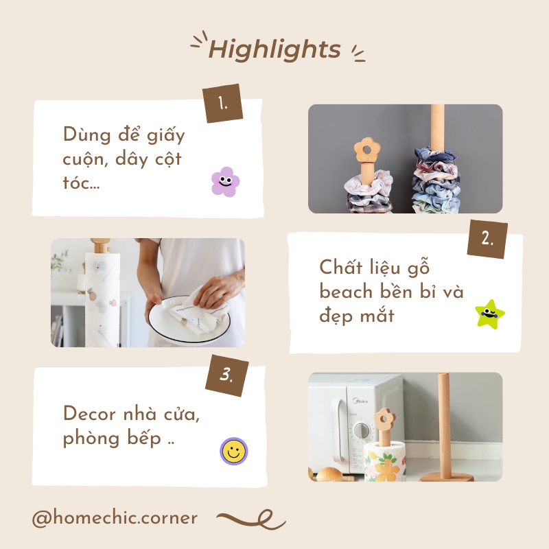 Cọc gỗ cắm giấy thanh giữ giấy đồ đựng giấy cuộn thanh gỗ đựng giấy ăn Gỗ Beach | HOME CHIC CORNER