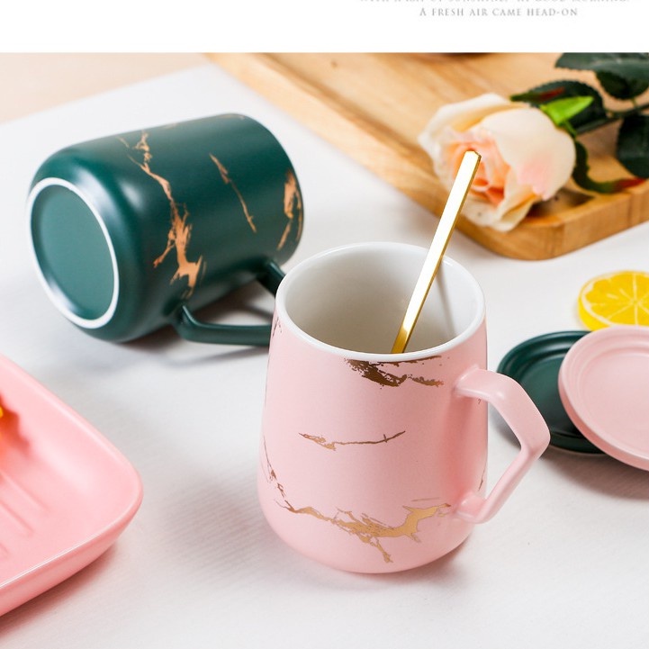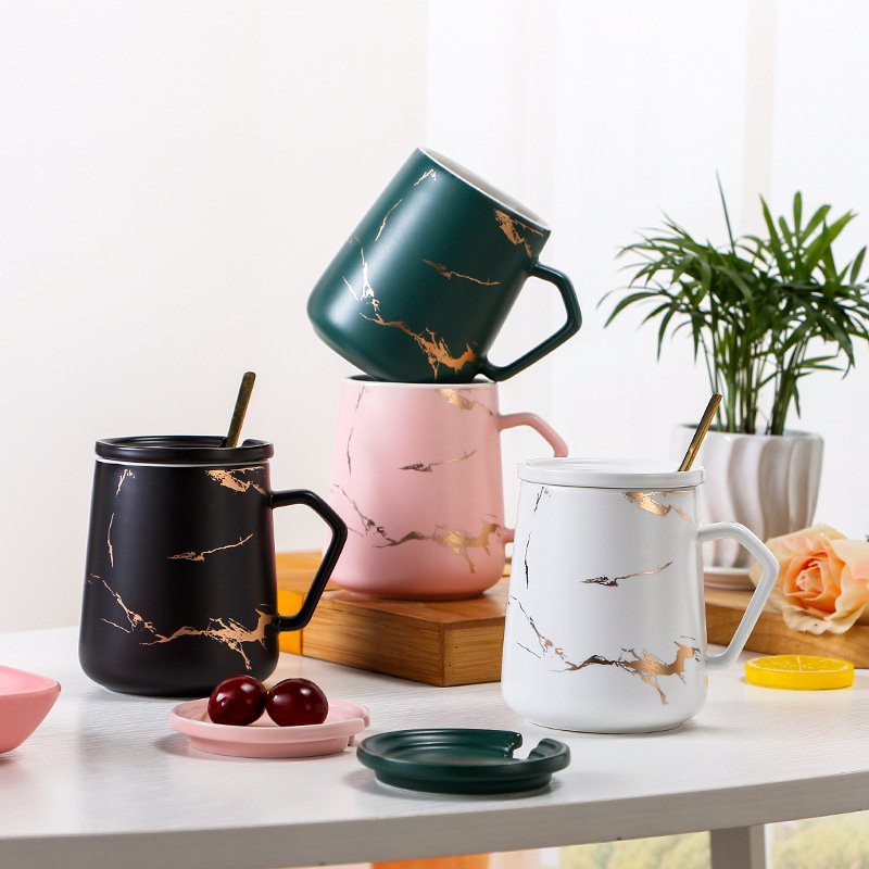 Nhà cửa & Đời sống > Dụng cụ nhà bếp > Dụng cụ pha trà, cà phê || Cốc Gốm Sứ Có Nắp Vân Cẩm Thạch Dung Tích 400ml- Tặng Kèm ThìaCòn hàng