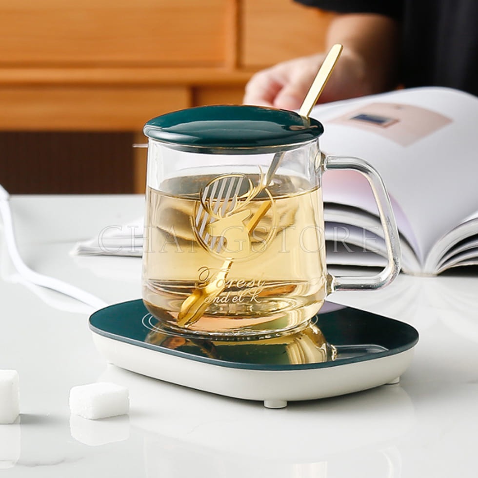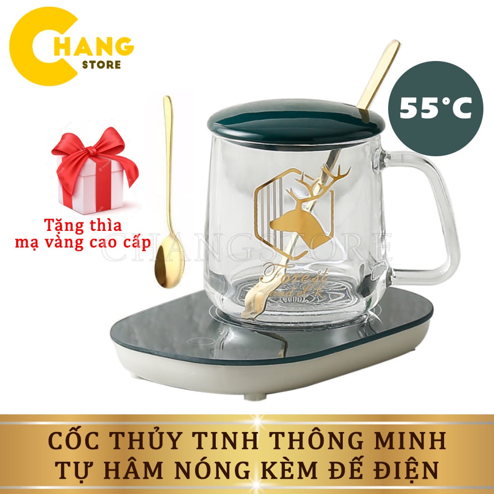 Nhà cửa & Đời sống > Dụng cụ nhà bếp > Dụng cụ pha trà, cà phê || Cốc Hâm Nóng Bằng Thủy Tinh, Ly Thủy Tinh Kèm Đế Điện Hâm Nóng Cafe, Sữa, Trà + Tặng Thìa Mạ Vàng Tiện LợiCòn hàng