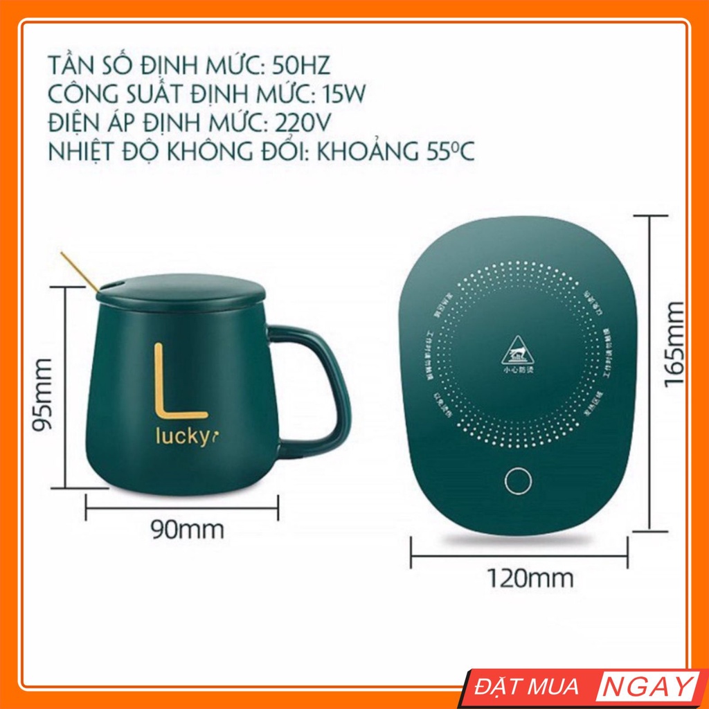 Cốc Hâm Nóng Đồ Uống Cà Phê Kèm Đế Điện Giữ Nhiệt Lucky Cao Cấp Trưng Yến Pha Trà Tặng Thìa Mạ Vàng