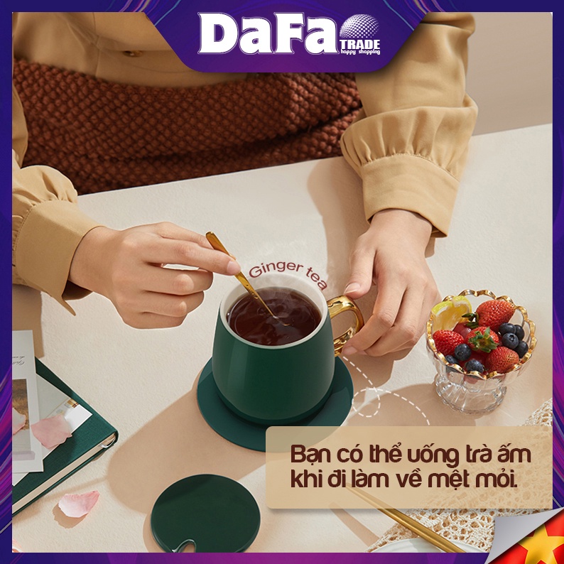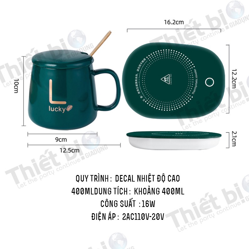Cốc Hâm Nóng đồ uống kèm đế điện, Bộ ly sứ kèm đế điện hâm nóng trà, cafe, hâm sữa + Tặng kèm thìa vàng, hộp sang trọng