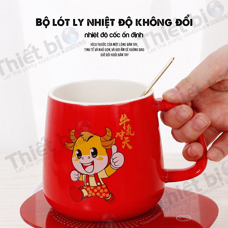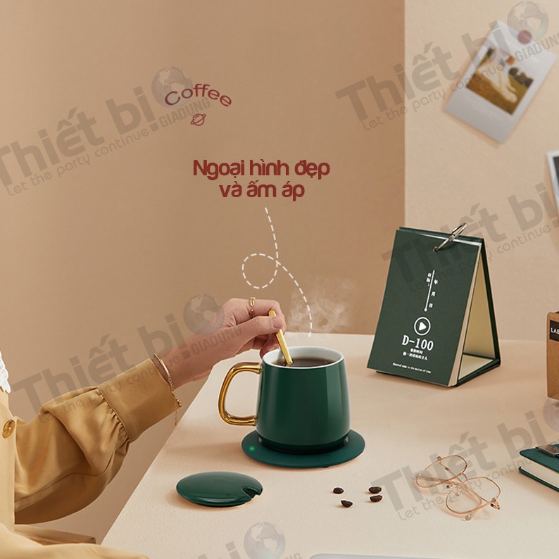 Thiết Bị Điện Gia Dụng > Khác || Cốc Hâm Nóng đồ uống kèm đế điện, Bộ ly sứ kèm đế điện hâm nóng trà, cafe, hâm sữa + Tặng kèm thìa vàng, hộp sang trọngCòn hàng