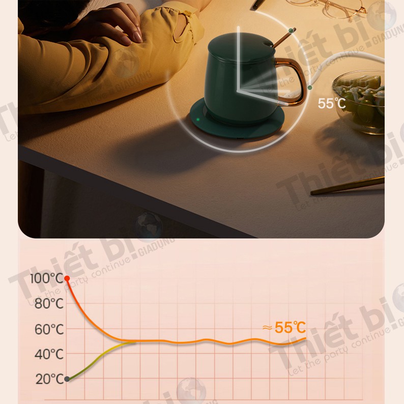Cốc hâm nóng kèm đế điện, Đế hâm nóng cafe,sữa,trà dùng cho mọi chất liệu + Kèm thìa vàng, hộp đựngĐẶC TÍNH BỘ ĐẾ CỐC GIỮ NHIỆT HÂM NÓNG