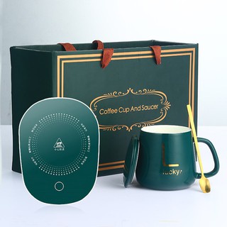 Bộ sản phẩm Cốc Hâm Nóng đồ uống kèm đế điện, Bộ ly sứ kèm đế điện hâm nóng trà, cafe, hâm sữa + Tặng kèm thìa vàng, hộp sang trọng bao gồm: