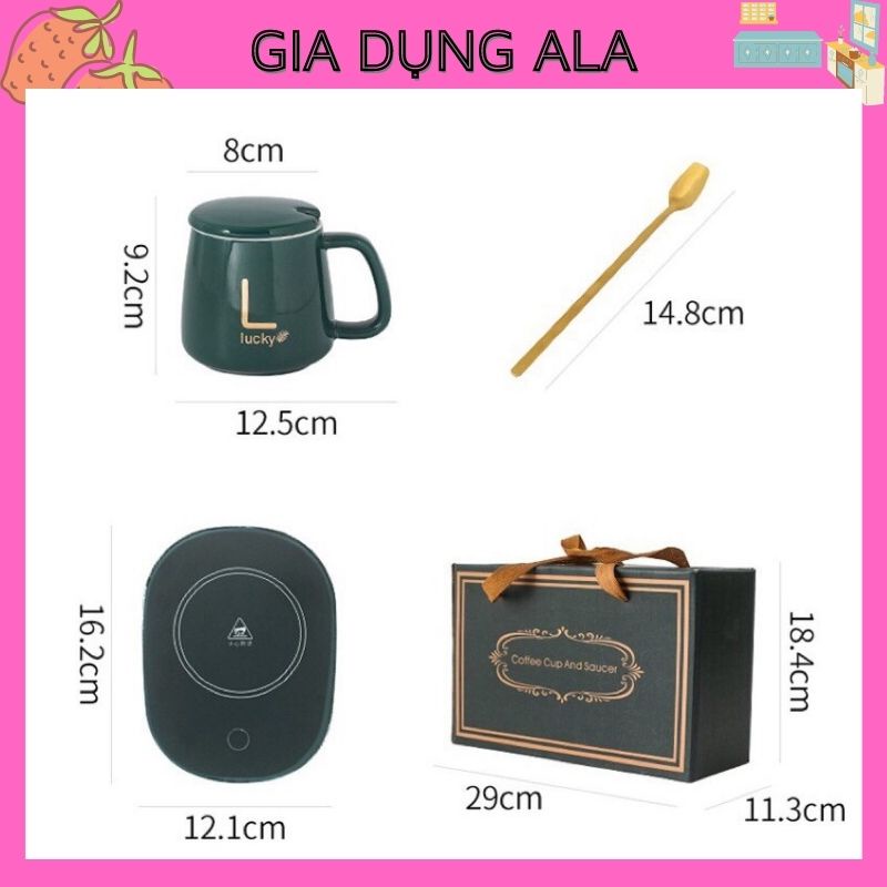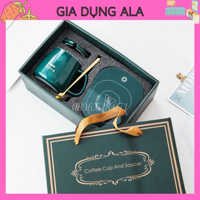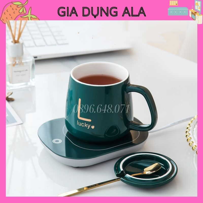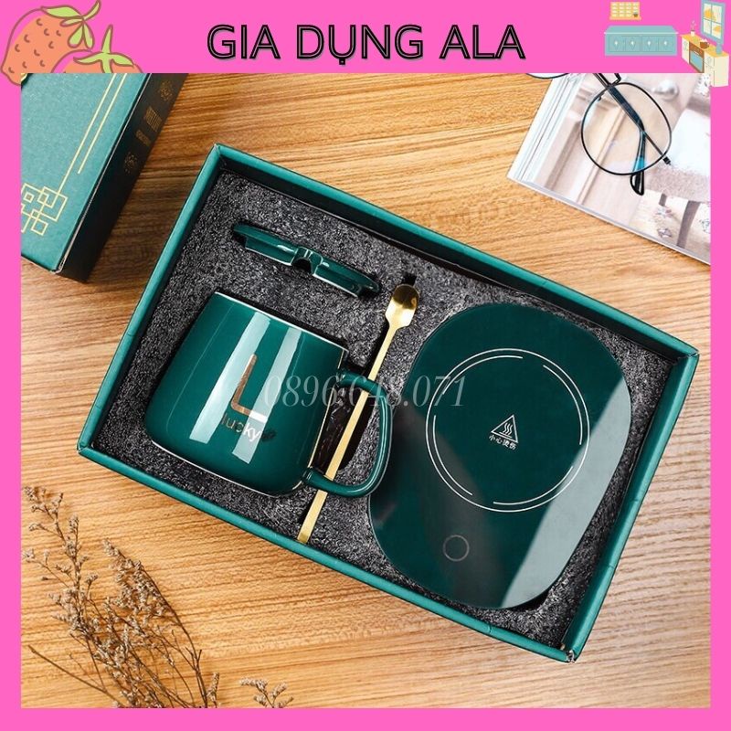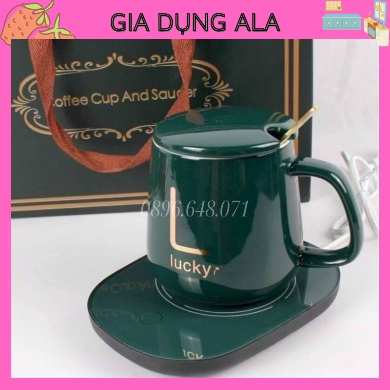 Cốc Hâm Nóng Đồ Uống Kèm Đế Điện Giữ Nhiệt Cà Phê Lucky Cao Cấp Tặng Thìa Mạ Vàng Trưng Yến Pha Trà