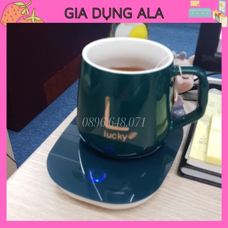 Giới thiệu Cốc Hâm Nóng Đồ Uống Kèm Đế Điện Giữ Nhiệt Cà Phê Lucky Cao Cấp Tặng Thìa Mạ Vàng Trưng Yến Pha Trà