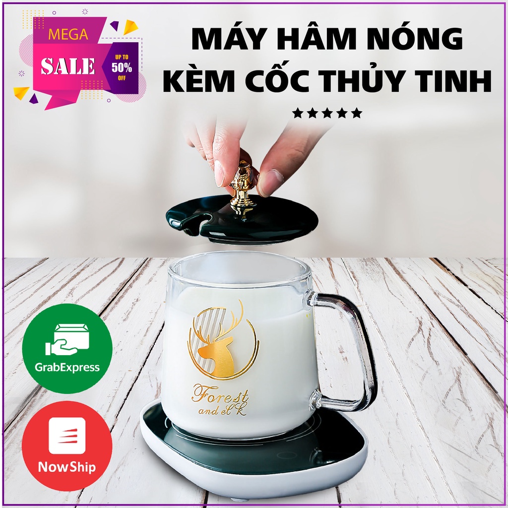 Cốc Hâm Nóng đồ uống kèm đế điện, cafe, hâm sữa + Tặng kèm thìa vàng