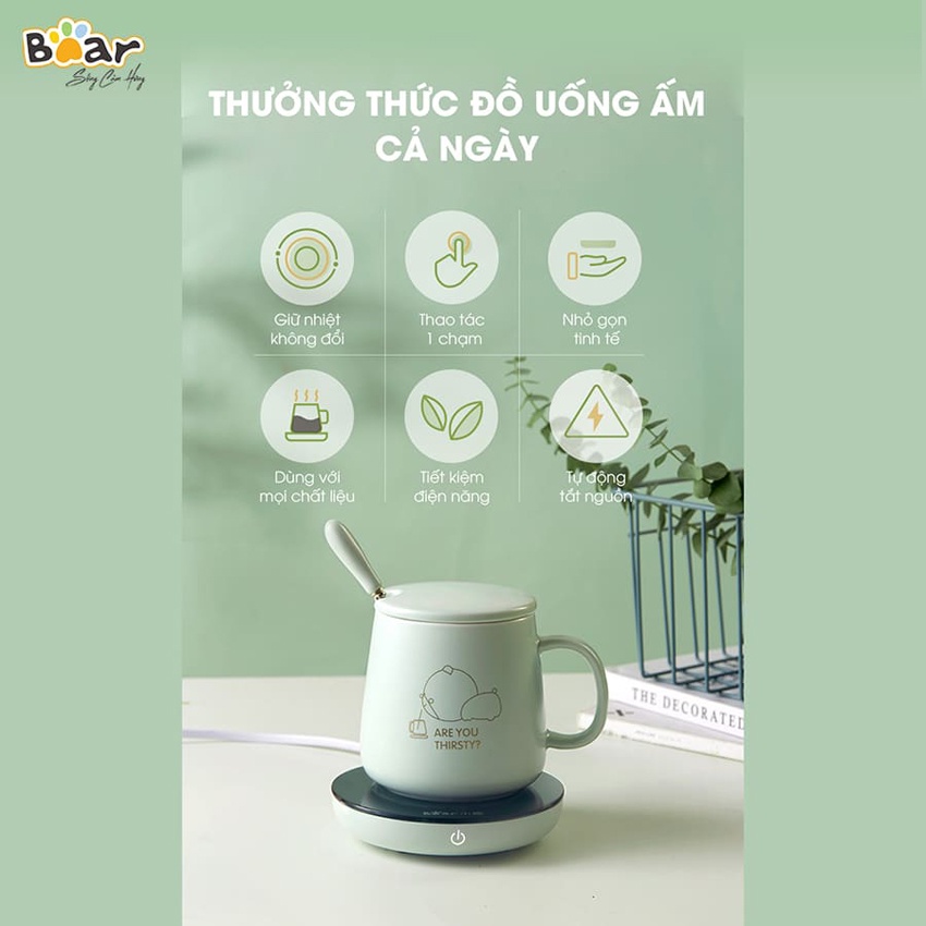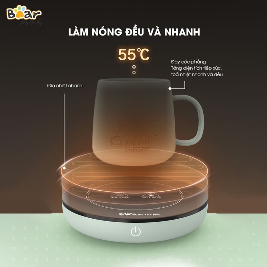 Cốc hâm nóng kèm đế Bear DRBD-A16B1 sở hữu thiết kế xinh xắn, làm nóng đồ uống nhanh chóng với mức nhiệt 55 độ C vô cùng hoàn hảo. Tích hợp công nghệ làm nóng thông minh với thiết kế hiện đại phù hợp sử dụng cho nhiều loại chất liệu ly cốc và đồ uống khác nhau, Cốc hâm nóng kèm đế Bear DRBD-A16B1 giúp bạn tận hưởng đồ uống ấm nóng mọi lúc mọi nơi.THÔNG TIN SẢN PHẨM