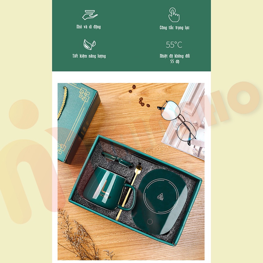 Giới thiệu Cốc Hâm Nóng Kèm Đế Điện Và Thìa Mạ Vàng Cao Cấp Minaho - Bộ Cốc Hâm Nóng Dùng Được Cho Mọi Loại Cốc
