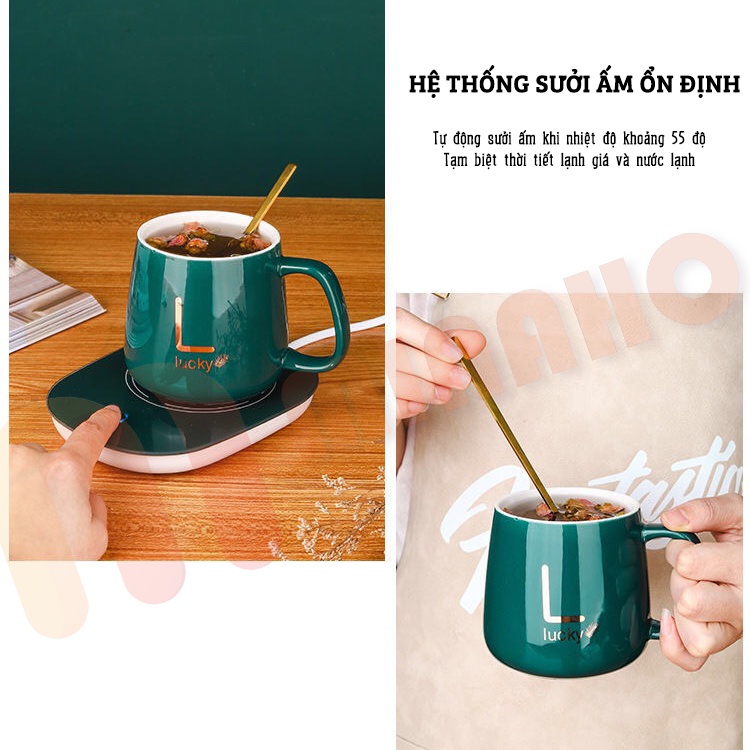 Cốc Hâm Nóng Kèm Đế Điện Và Thìa Mạ Vàng Cao Cấp Minaho - Bộ Cốc Hâm Nóng Dùng Được Cho Mọi Loại Cốc