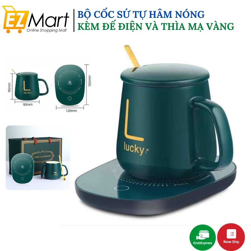 Nhà cửa & Đời sống > Dụng cụ nhà bếp > Dụng cụ pha trà, cà phê || Bộ Cốc Hâm Nóng Tự Động Kèm Đế Điện Và Thìa Mạ Vàng, Đế hâm nóng cafe,sữa,trà dùng cho mọi chất liệuCòn hàng