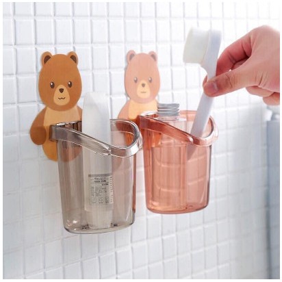 Cốc hình gấu để bàn chải và dụng cụ nhà tắm dán tường tiện lợi