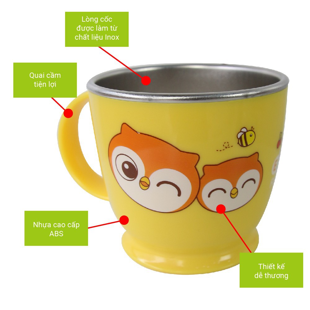 Cốc Inox chống trượt Edison hình cú mèo (quai 1 bên)