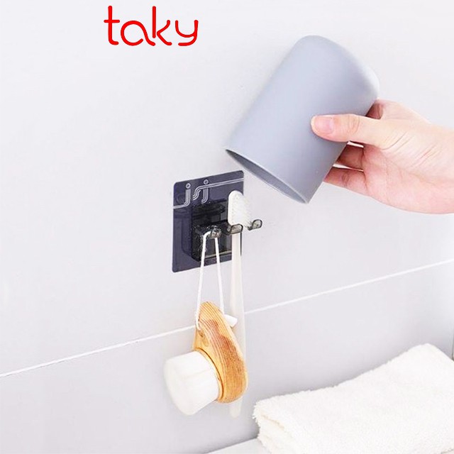 Cốc Kèm Giá - Taky, Treo Bàn Chải Đánh Răng - Úp Cốc Dán Tường Nhà Tắm, Khô Ráo, Sạch Sẽ, Tiện Lợi Cho Phòng Tắm - 5216