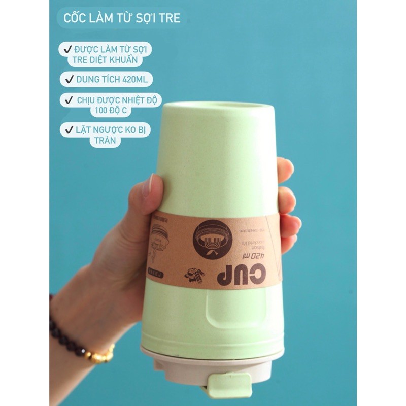 Cốc làm từ sợi tre diệt khuẩn, ly uống nước có nắp
