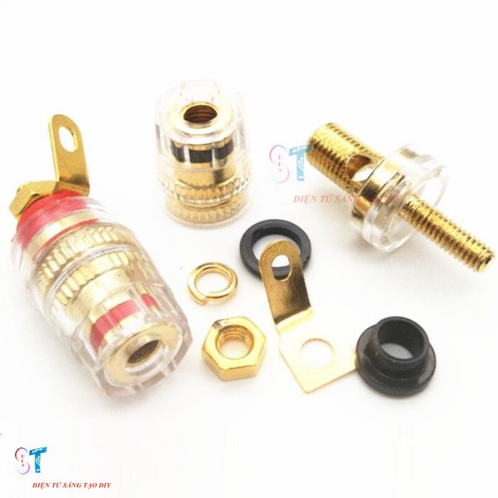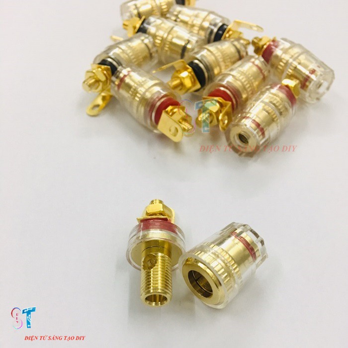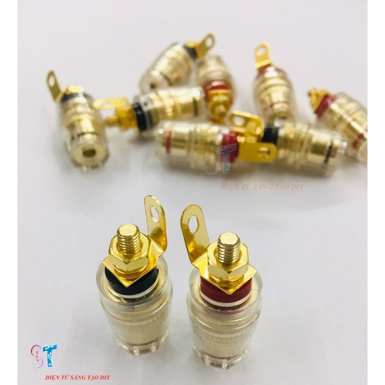 Cọc loa - Trạm loa - Jack bắp chuối bằng đồng nguyên chất chống oxi hóa, chống méo tín hiệu, nâng cao khả năng truyền dẫn âm thanh chất lượng cao, âm thanh hifi, hires...Cọc loa - Trạm loa - Jack bắp chuối dùng thay thế trạm loa ở amply, trạm loa của thùng loa bị hư hỏng, thay thế dể dàng, việc thay thế này nhằm bảo vệ amply, loa khi mà jack củ bị hư hỏng, không còn tiếp xúc tốt với dây loa dễ gây chập cháy.