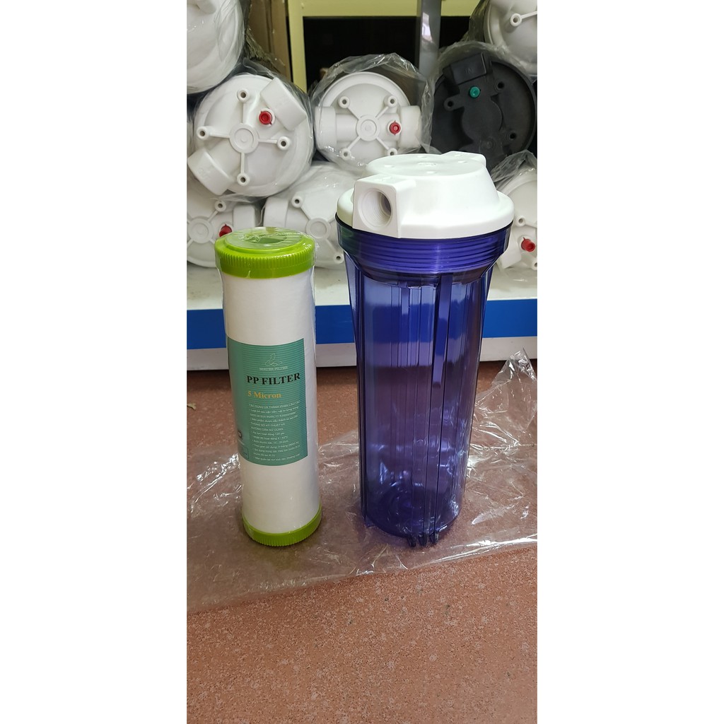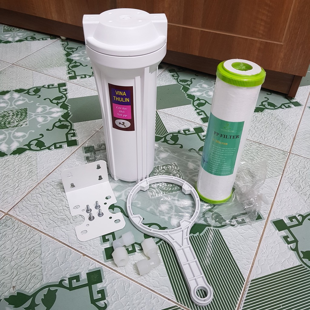 Có thể chọn lấy đủ bộ cốc gồm: cốc lọc 10inch ren 21, tay vặn, lõi PP 10inch 5 micron, giá treo, vít bắt, cút ren ống dây 10.