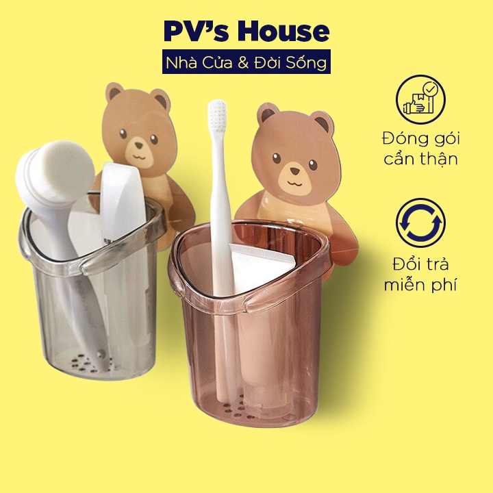 Cốc, ly đựng bàn chải kem đánh răng treo tường hình gấu