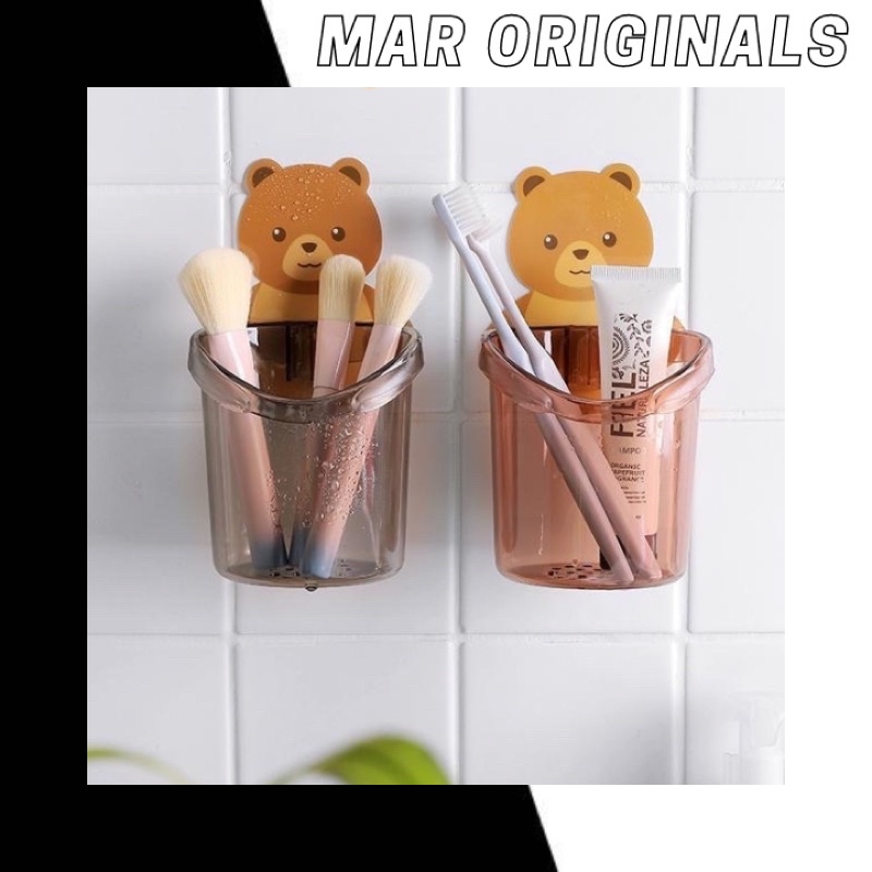 Cốc ly gấu dán tường đựng bàn chải, kem đánh răng đa năng, nhựa cao cấp, có lỗ thoát nước tiện lợi