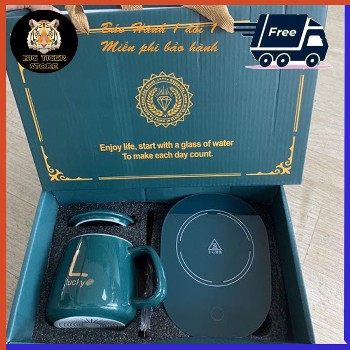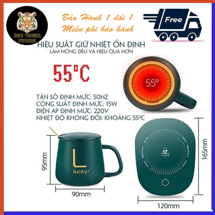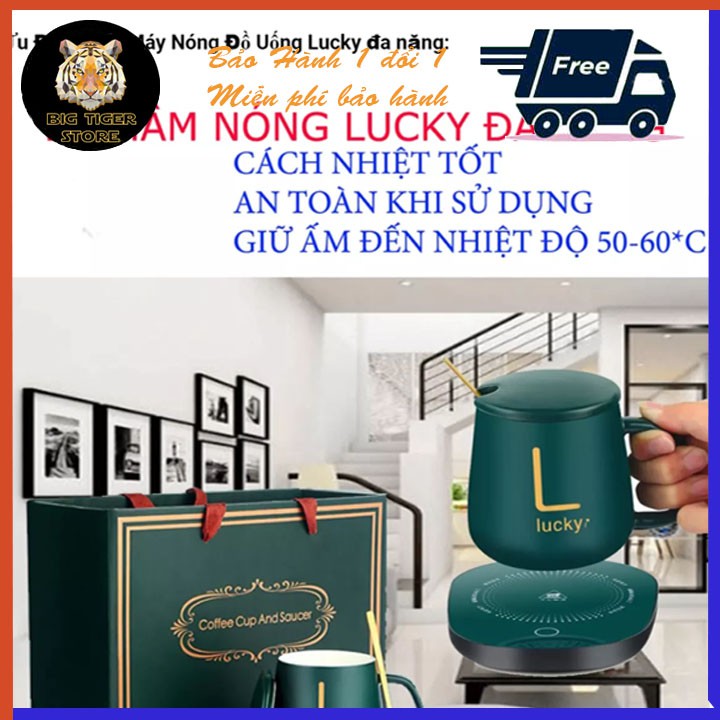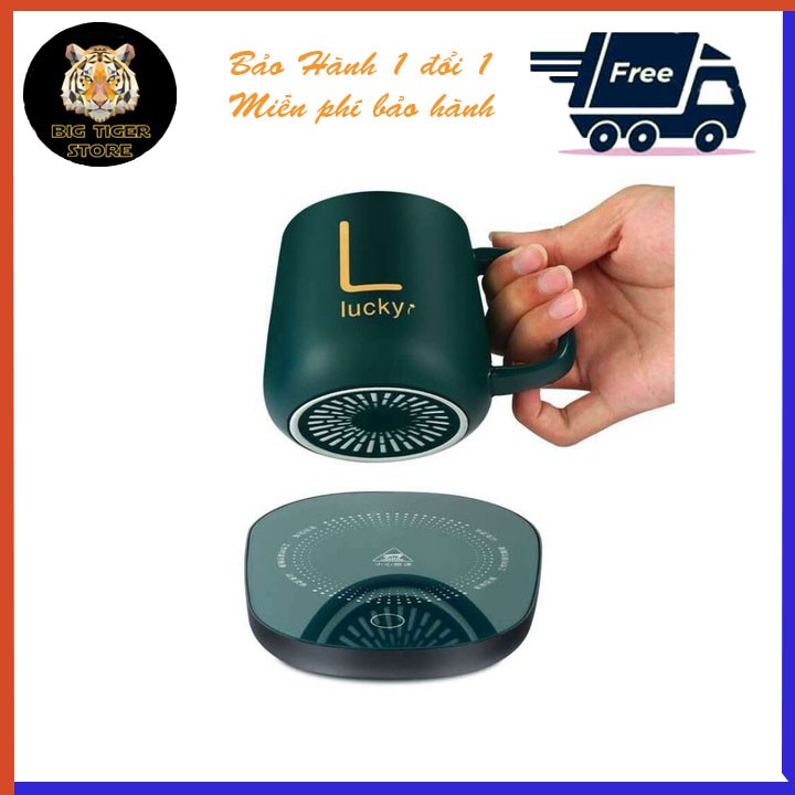 Bộ Cốc Ly Sứ Hâm Nóng Lucky Thông Minh Cao Cấp, Kèm Đế Điện Hâm Cafe, Sữa, Trà Tặng Kèm Thìa Mạ Vàng Tiện Lợi