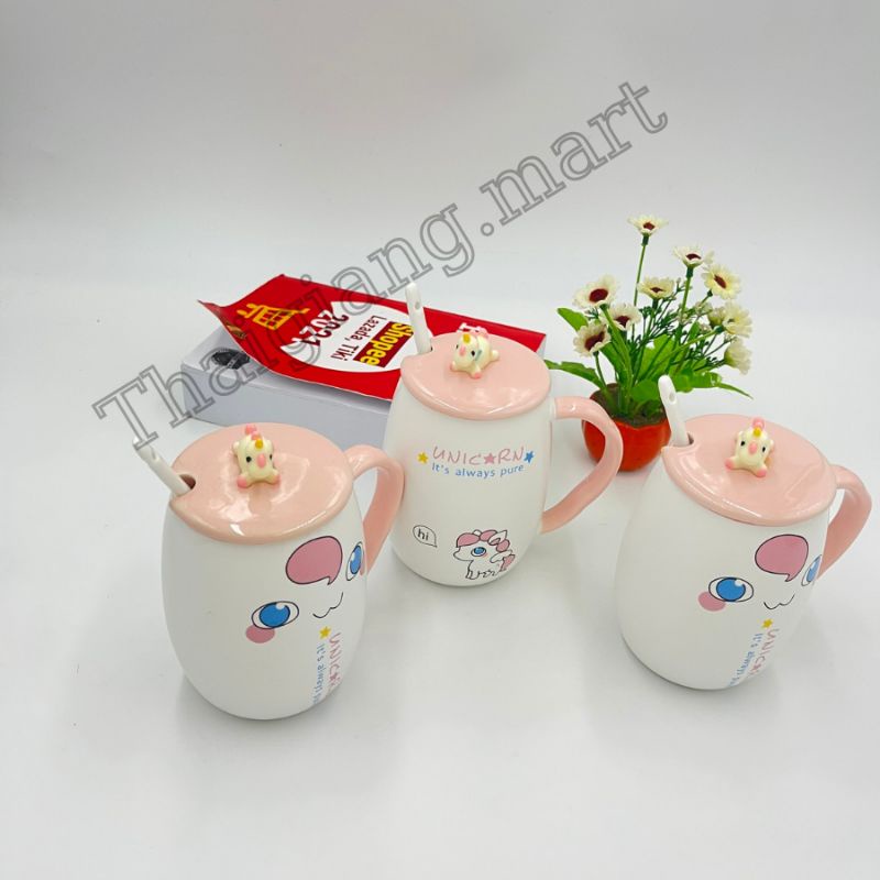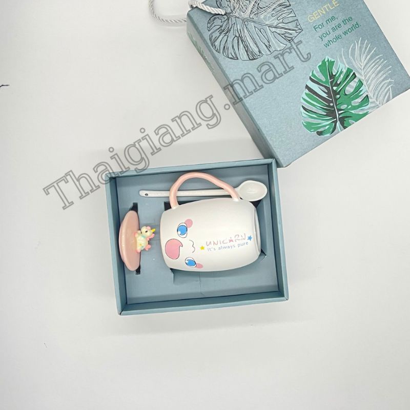Thiết Bị Điện Gia Dụng > Khác || Cốc, ly sứ uống nước pha trà, cafe có nắp tặng kèm thìa họa tiết kỳ lân cute đáng yêuCòn hàng