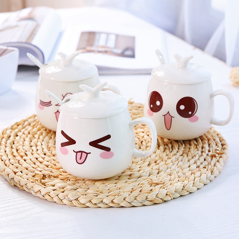 Cốc Mặt Cười Uống Trà , Cà Phê Kèm Thìa + Nắp